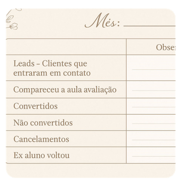 Pronto pra você adaptar ao seu estúdio. Use com novas colaboradoras ou pra reciclagens internas.